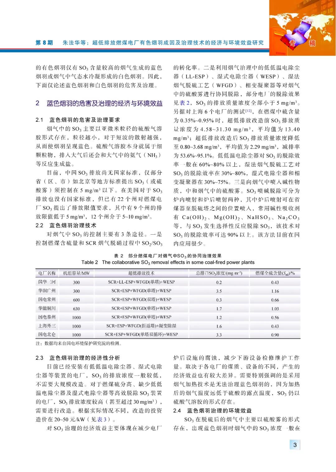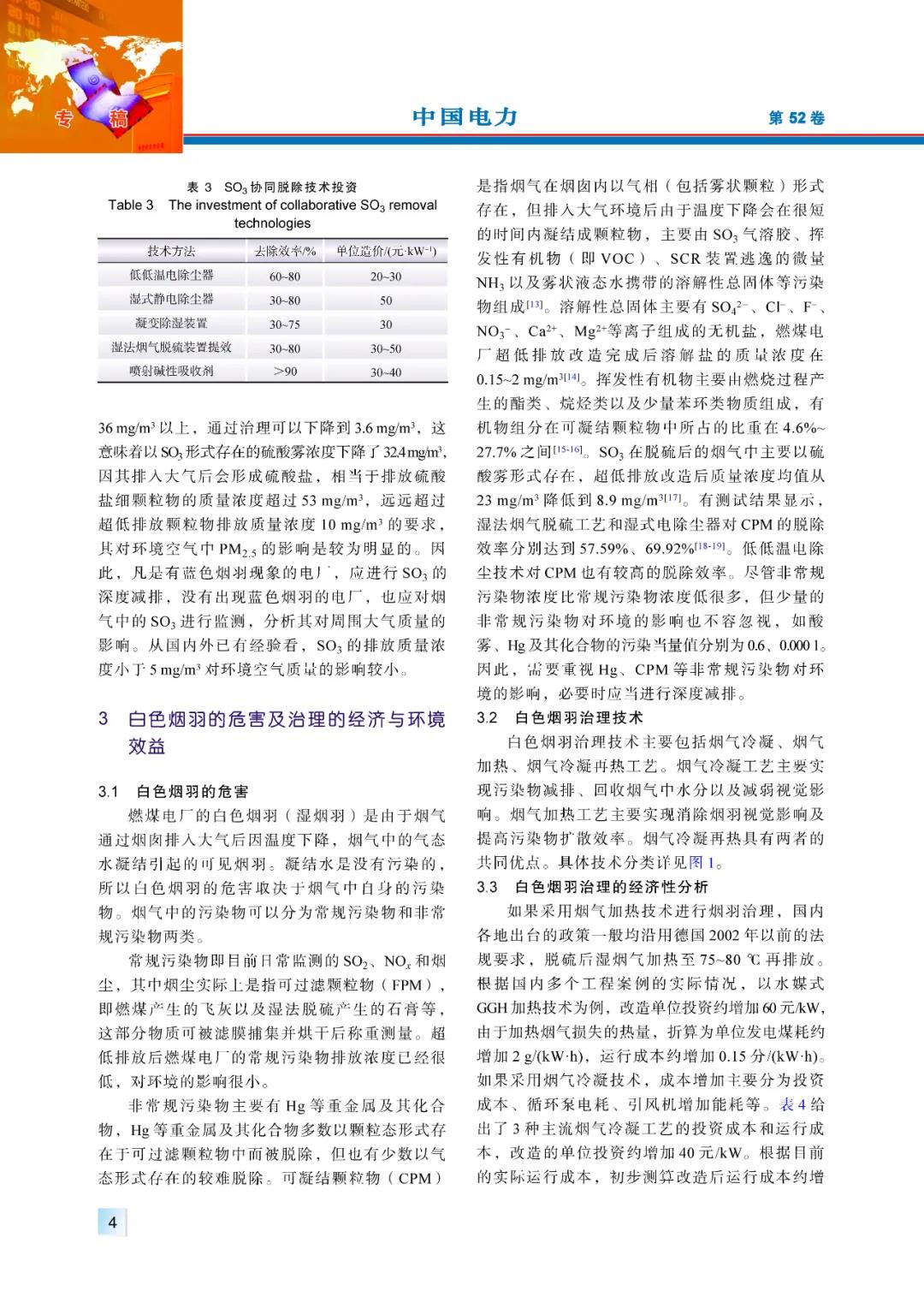 (2)燃煤電廠超低排放后,普遍存在的是白色煙羽,有少數(shù)燃用中、高硫煤的電廠會(huì)出現(xiàn)藍(lán)色煙羽。白色煙羽主要是存在視覺(jué)影響,本身對(duì)環(huán)境影響不大,治理能收獲的環(huán)境效益較??;藍(lán)色煙羽中硫酸霧濃度較高,應(yīng)進(jìn)行治理。