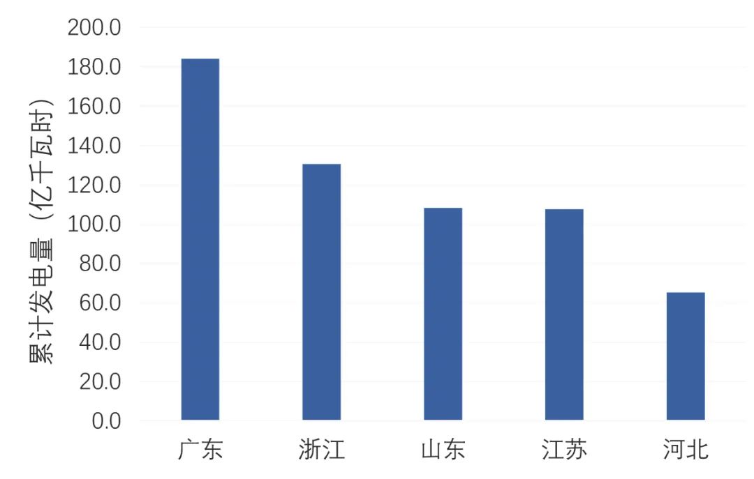 累計裝機(jī)容量排名前五的省份是廣東、山東、江蘇、浙江、黑龍江,分別是422萬千瓦、411萬千瓦、297萬千瓦、284萬千瓦、259萬千瓦;新增裝機(jī)容量排名前五的省份是,廣東、黑龍江、遼寧、廣西、河南,分別是45萬千瓦、37萬千瓦、33萬千瓦、26萬千瓦、24萬千瓦。